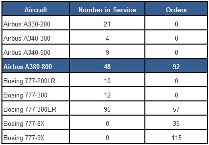 With this order Airbus' backlog for A380 superjumbo increased to eight years of production, far ahead of Boeing's backlog of 2.8 years of production for its own superjumbo 747.