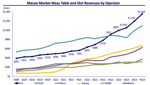 Mass market table revenue is up 58% for Sands in Q4 2013 over the
