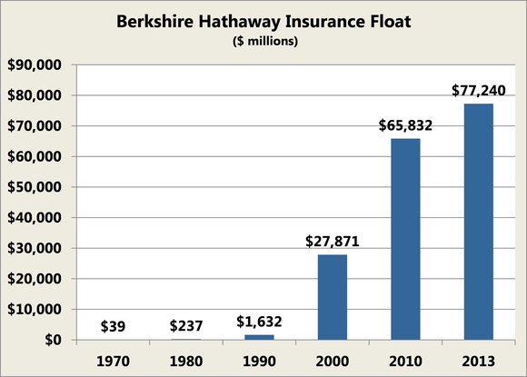 With nearly $500 billion of assets on its balance sheet, it's easy to think Berkshire's days of its growth are long behind it. After all, the growth of the float of its insurance businesses -- the difference between what they receive in premiums from customers versus what is paid on claims -- over the years, has been incredible. But now, a gain of $150 million doesn't exactly move the needle:
