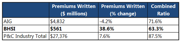 Earlier this year, we learned Berkshire Hathaway, in total, saw its total excess and surplus insurance premiums written -- which includes a few of its other businesses -- jump by $150 million, or nearly 40% in 2013, to stand at $561 million. The overall industry only saw premiums increase by 7.6%, and industry leader AIG (AIG +1.06%) saw its premiums actually fall by 4.2%, to $4.8 billion.