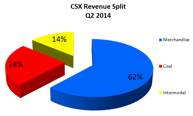 CSX's business is split into three segments -- merchandise, coal, and intermodal.