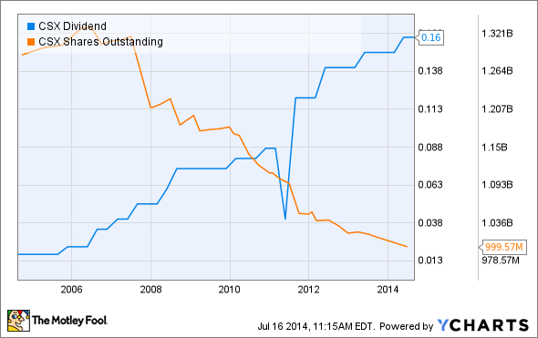 While investors may have to wait a couple of quarters to see those gains take place, the silver lining is that CSX has continuously returned value to shareholders through increased dividends and share repurchases.