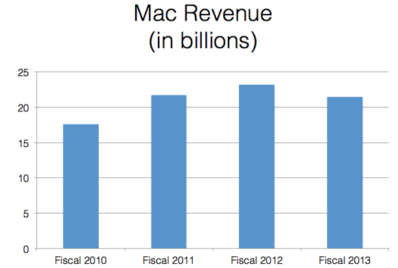 Here's how Apple's Mac revenue has played out over the past four fiscal years: