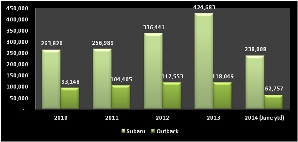 Subaru owes a lot of its success in America to the ever-popular Outback wagon, which has held its ground amid growing popularity of SUVs. In 2013, the Outback accounted for over 26% of Subaru's total U.S. sales. Buyers have loved its practical design, big cabin space, and of course, Subaru's signature all-wheel drive.