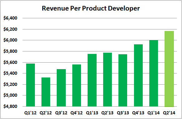 The amount of revenue that Proto Labs generates on a per product developer basis can tell investors if customer spending and loyalty is on the rise. Over the long term, customer loyalty could become an important asset for Proto Labs should the competition begin to encroach on its turf. During the quarter, customer spending increased 7%, indicating that customer satisfaction remains strong, which creates the building blocks for enduring brand loyalty.