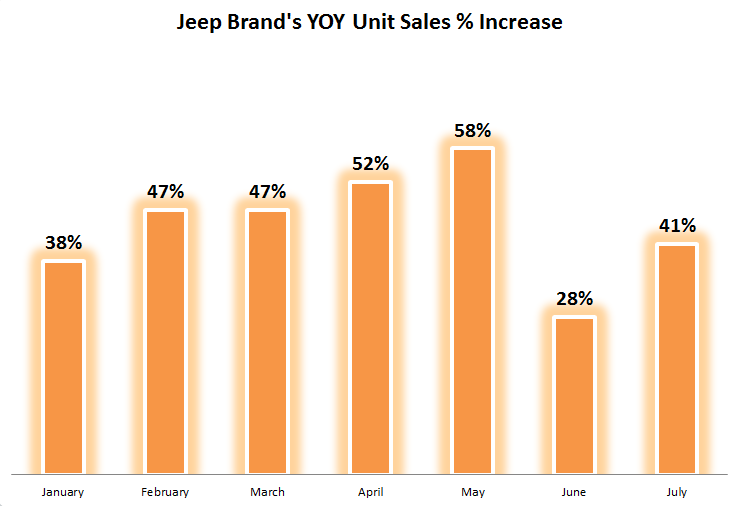 Furthermore, Jeep hit multiple milestones in May as Jeep sales topped 70,000 for the first time ever. It was also the third consecutive month that the Jeep brand set its all-time monthly record for sales -- pretty impressive stuff.