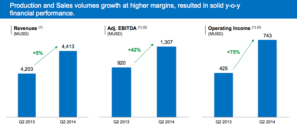 Both the upstream and downstream business are generating increased profitability because of growing volumes and increased prices.