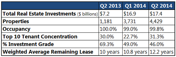 In October of last year, American Realty Capital Properties acquired Cole Real Estate Investments in an $11 billion move as it became the largest publicly traded net-lease REIT. As a result, the raw numbers of its results are even more eye-opening.