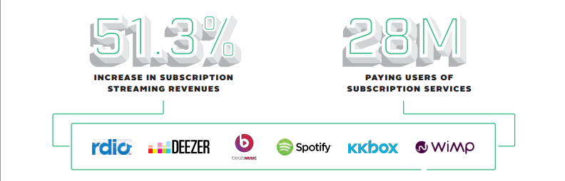 The subscription streaming music market is growing rapidly. Source: IFPI.org
