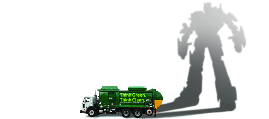 This summer, Waste Management's "Junkheap" front-end loader debuted in the movie "Transformers: Age of Extinction." Have transformative business decisions also taken place at WM in 2014? Image: Waste Management,