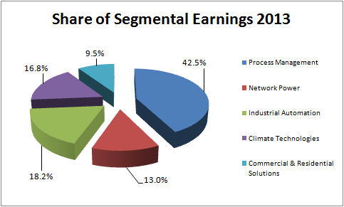 Many of these issues resonate strongly in the emerging world and affect the kind of long-cycle projects (oil and gas processing, chemicals processing, etc.) that Emerson Electric sells into. In particular, its two biggest segments (process management and industrial automation) are being affected negatively.