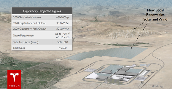 Aside from Panasonic, one company Tesla can likely count on to help out with its Gigafactory is SolarCity (SCTY +0.00%). This would be an obvious "supplier" fit for a number of reasons. For starters, the massive, 5-million-square-foot facility will be powered by renewable energy, including solar and wind sources. Given Tesla's ongoing relationship with SolarCity, it is likely it will be the company to outfit the plant's solar infrastructure.