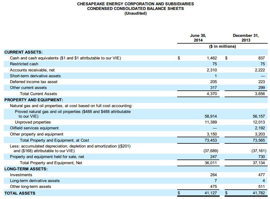 Source: Chesapeake Energy Corporation 10-Q for the second quarter of 2014.