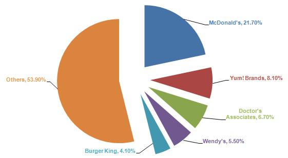 2013 market share of leading brands in the U.S. fast food industry, chart by author, Source: Statista