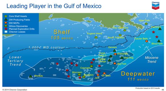 That chart confirms the latest analysis from energy research firm Wood Mackenzie that estimates deepwater oil production in the Gulf will hit a new production peak of 1.9 million barrels of oil equivalent in 2016. This is due to an expected 18% per year surge in production from 2014-2016 as new projects come online and ramp-up production.