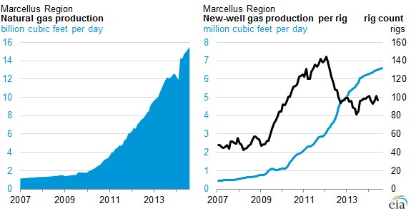 Over half of Maine's energy comes from renewables -- because its raging rivers run hydroelectric dams. Eighty-eight percent of Icelandic energy is renewable -- because the nation has huge geothermal assets underneath it. For New York, fracking natural gas represents an enormous energy and economic opportunity. But since the state has never received big tax boosts from natural gas, it won't miss them now. That's a major reason why natural gas companies in other states enjoy a "home court advantage" to environmental activists, but it won't help energy companies in the Empire State. Marcellus Region production has expanded fifteen-fold in the last four years, and government estimates put the area's total capacity at up to 489 trillion cubic feet. New York alone holds around 141 trillion cubic feet -- enough to meet the state's current yearly consumption 128 times over.