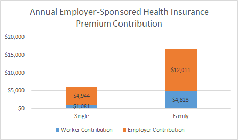 However, the employer-sponsored premiums don't reflect how much employers pay. When the employer portion of health insurance is included, the numbers tell a different story.