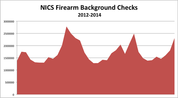 Except for this past December, when background checks rocketed to over 2.3 million checks, a 13% increase over December 2013 and a 28% jump from the month before. What made this Christmas season a particularly merry one for gun sales?