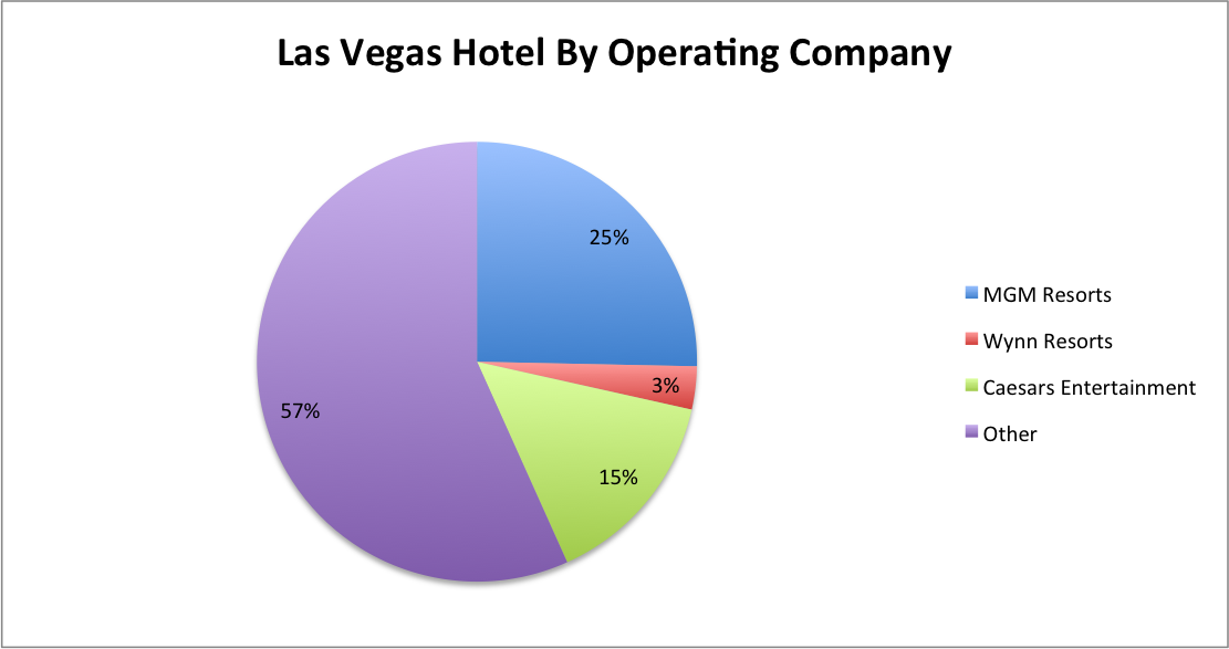 Source: Total hotel room numbers from LVCVA; other figures from each company's reported hotel operations.