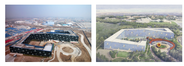 Current construction and rendered view of the completed Toy Story themed hotel. Image source: Disney