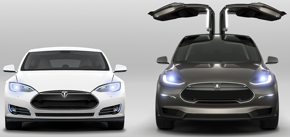 Model S (left) and prototype of Model X. Source: Tesla Motors.