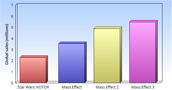 That combination resulted in a level of immersion in RPGs that hadn't been achieved by established Japanese role-playing franchises like Final Fantasy. Bioware's RPGs were also generally more accessible to console gamers who thought PC-based Western RPGs were too complex or open-ended. Demand for Bioware RPGs, especially the ones Hudson was personally involved in, has been steadily rising. See the chart below.