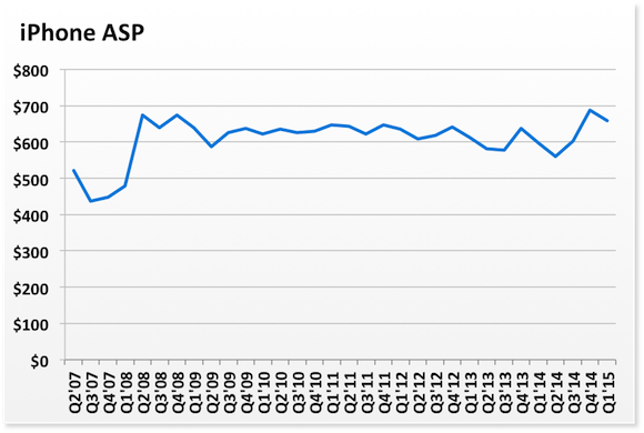 Not only have iPhone average selling prices been stable over the years, but they have been trending up over the past few quarters, thanks to two new pricing developments. First, the iPhone 6 Plus comes with a $100 premium relative to the iPhone 6 due to the larger 5.5-inch display. Second, Apple changed its pricing structure for NAND storage. Nowadays, the entry-level price gets you 16 GB of storage, with the mid range model carrying 64 GB of storage for an extra $100. Those are powerful incentives to give Apple another $100.