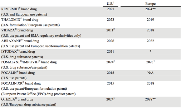 Celgene looks to be in good shape, as most of its best-selling and highest-growth drugs appear to be protected well into the 2020s.
