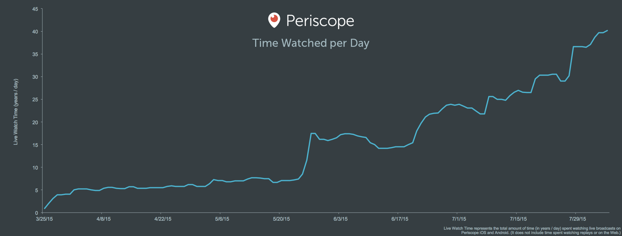 Perhaps more impressively, the audience appears extremely engaged. In the update, Periscope commented that its users streamed roughly 40 years of content on the platform each day.