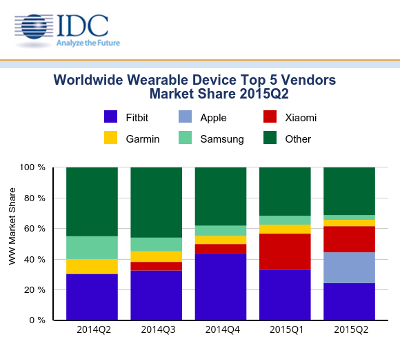 According to a fresh market report from IDC, Fitbit remains the largest player in the global market for wearable computing devices. Its unit sales increased 159% year over year. The company holds a dominant 24% market share overall. Sounds great, right?