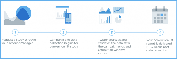 Twitter has finally put together a system that allows advertisers to receive a "conversion lift report" following an ad campaign. Twitter will segment an advertiser's target audience into two groups -- a control group and a group that sees the ads -- and measures the impact an ad has on conversions. This is the same as the Conversion Lift tool Facebook (FB 1.67%) introduced in January.