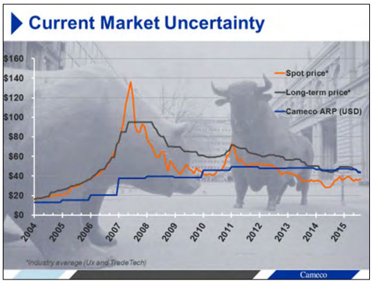 Uranium prices have been on the decline. Source: Cameco.