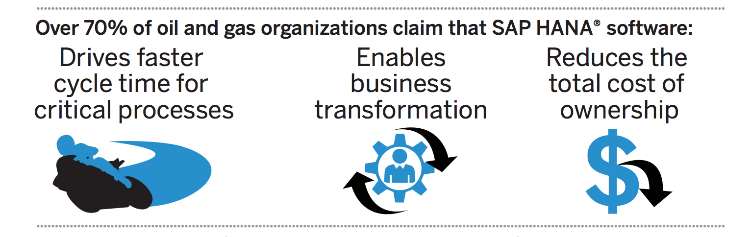 SAP's exposure to the industry is significant. According to the company, 48% of all oil and gas organizations have installed SAP HANA, and 93% of those companies agree that the solution enables fast decision making.