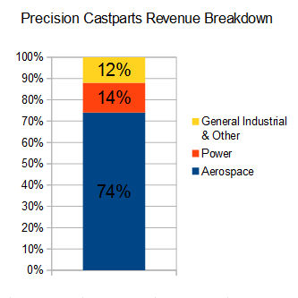 Precision describes itself as, "...a worldwide, diversified manufacturer of complex metal components and products..." The bulk of its business is in Aerospace but, essentially, it makes highly technical parts for jet engines and power turbines.