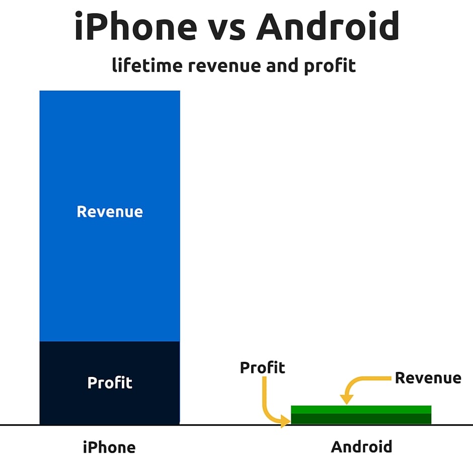 Here's what that looks like compared with Google's revenue and profit from Android.