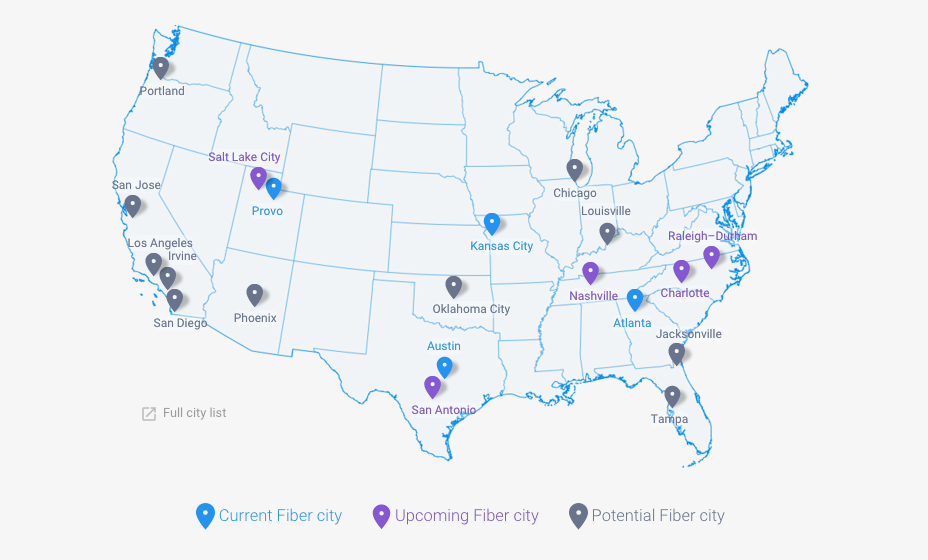 For starters, Alphabet's expansion plans for Google Fiber involve more than doubling the number of cities in which the service operates, from three today to eight total approved locations. All told, Alphabet could bring Fiber to as many as 19 municipalities.