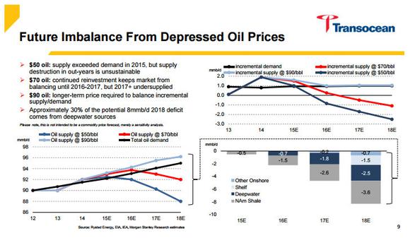 What's worth noting about this slide is that 30% of the projected impact to supply is coming from deepwater sources, which aren't projected to be replaced because of current industry economics. In a sense, that chart is showing just how much those supplies will be needed in the future, even if the industry isn't investing in them at the moment. Said another way, rumors of the death of the offshore drilling industry have been greatly exaggerated, boding well for the future of both Transocean and Freeport-McMoRan's oil business in the Gulf of Mexico.