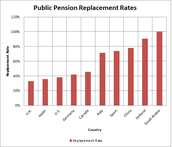 Nearly 60 million Americans receive benefits from Social Security, with the vast majority of them relying on the program for income after they retire. Yet, even though many Social Security recipients depend on the program for much or, in some cases, almost all of their post-retirement income, Social Security doesn't compare well with many of the public pension systems that other countries around the world put in place for their citizens.