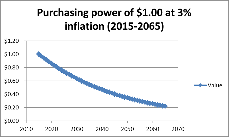 While 3% annual inflation may sound relatively harmless at first, you may be surprised to learn its long-term effects.