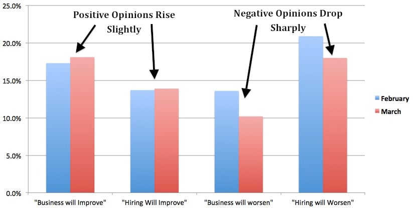 As you can see, it's not so much that the respondents were overwhelmingly optimistic. Rather, they just weren't as negative as before.