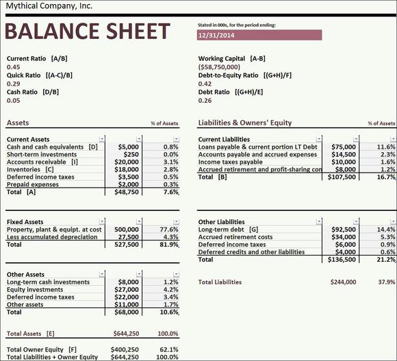 Now let's take a closer look to see how strong this balance sheet is by analyzing it with some common balance sheet ratios.