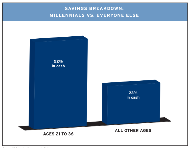 When it comes to investing, complete avoidance of risk is actually a maladaptive behavior. A recent report by the Brookings Institute found that those between the ages of 21 and 36 were hoarding their cash -- mostly in low- to no-yield instruments.