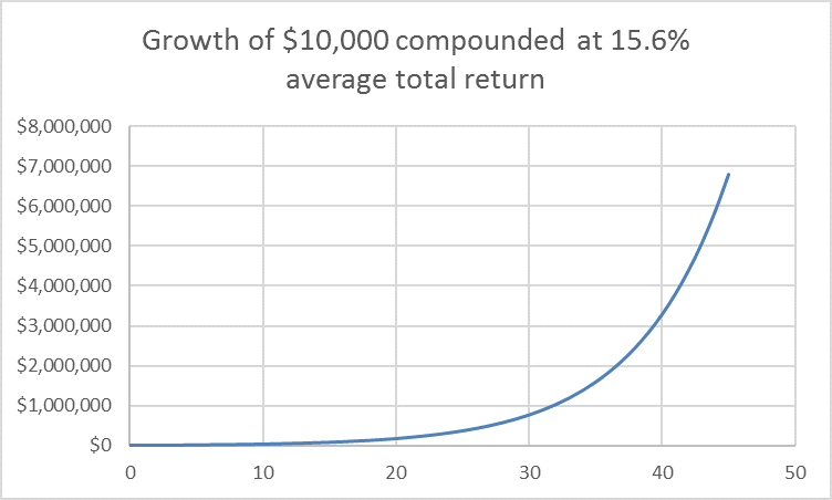 Here's where it gets fun. Let's say an investor bought $10,000 of Welltower stock 45 years ago and reinvested all of the dividends she received over the years. How much would her investment be worth today? $500,000? A million dollars, maybe? Actually, this investment would have ballooned to $6.8 million thanks to compounding. Imagine if this investor didn't stop with the initial $10,000 investment and had added to it over time -- we could be talking about a return well into the eight-figure range.