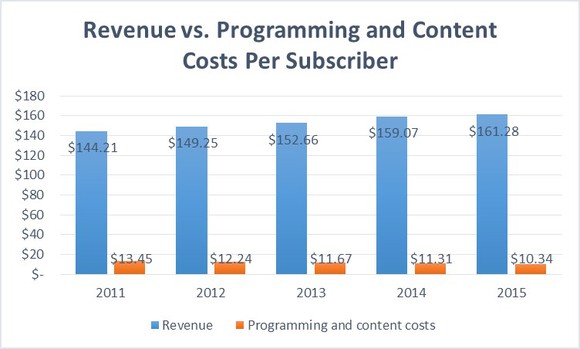 That's delivered the company consistent growth in revenue while costs of programming and content have remained relatively flat.
