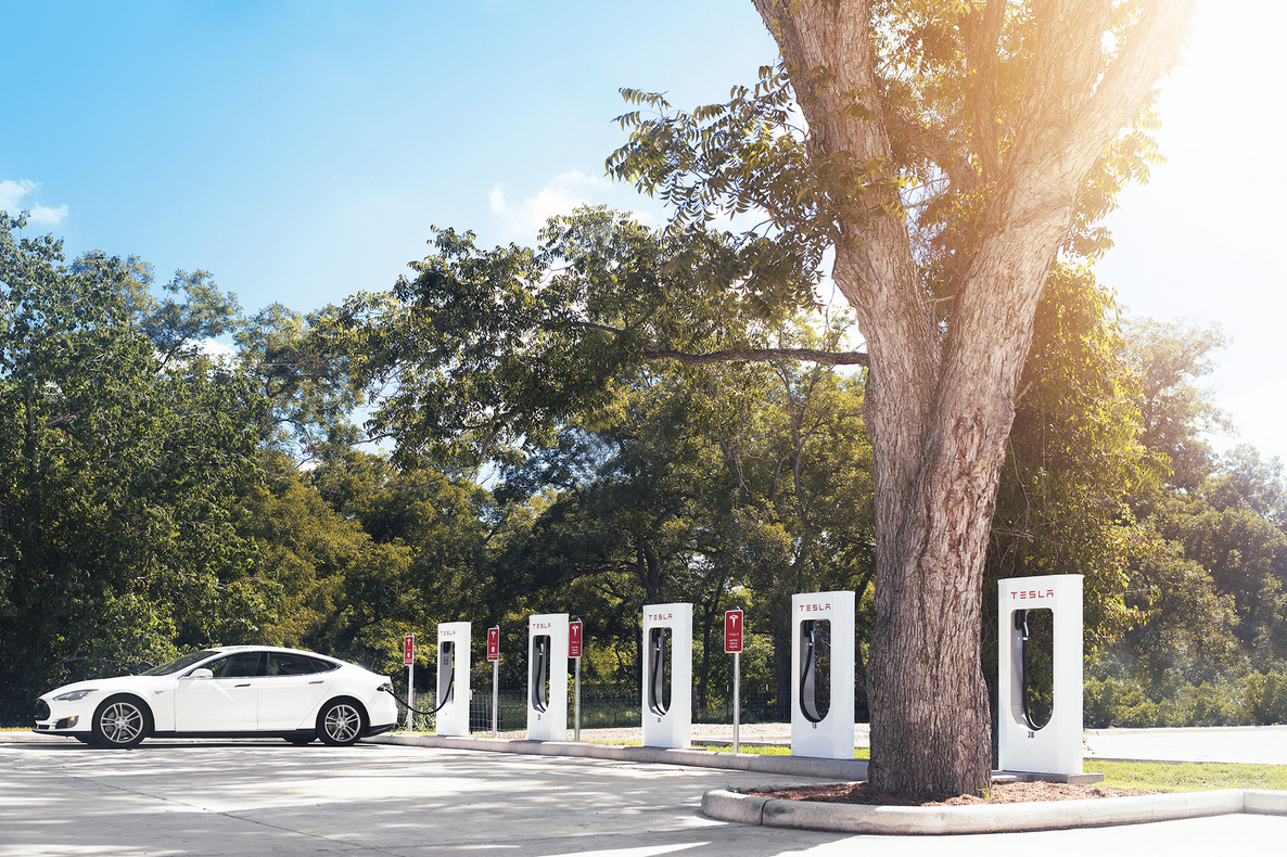 Model S at Tesla Supercharger location. Image source: Tesla Motors.
