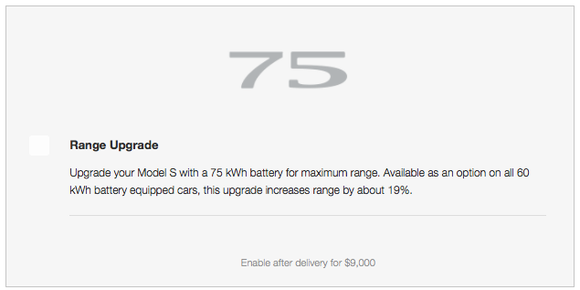 But the Model S 60 is back -- packed with a whole lot more value and a lower price. This time around, Tesla's Model S 60 starts at $66,000, includes lifetime access to Tesla's Supercharger network (for which buyers used to be charged $2,000 extra), gets 210 miles of range instead of 208, and -- here's the biggest benefit of all -- comes with a 75 kWh battery. The larger battery is available for a $9,000 fee, anytime after delivery, with a simple over-the-air software update.