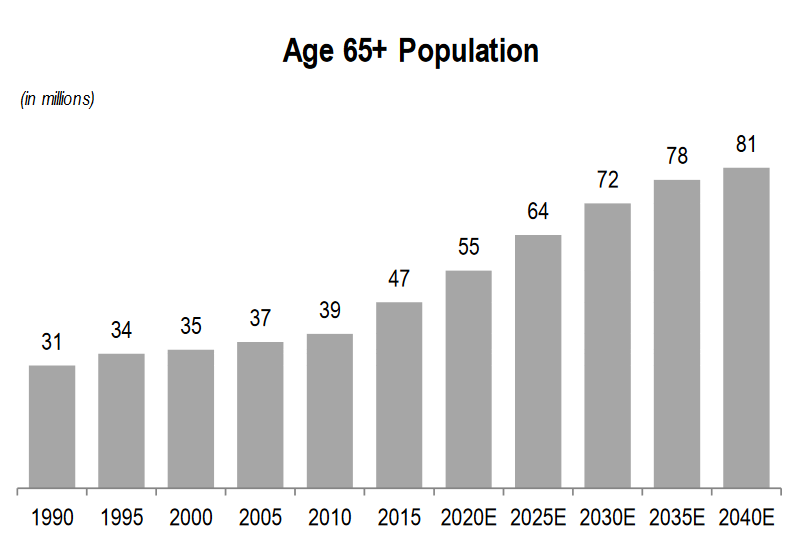 Aside from the cheap valuation, which I'll discuss more later, healthcare real estate is a highly attractive market right now, with favorable demographic and economic trends. Healthcare costs have been rising significantly faster than the overall rate of inflation, and the population of senior citizens is expected to grow by more than 70% over the next 25 years, leading to much greater demand for healthcare properties.