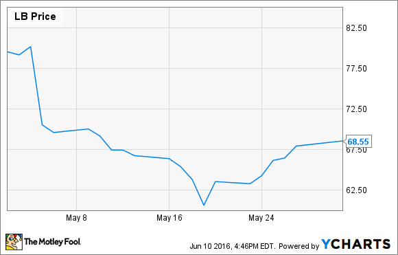 What: L Brands had a busy quarter where it not only reported earnings, it also announced it was dropping its catalogue, and eventually getting out of the swimwear business. The catalogue announcement came in April, but the price of the company's shares continued to steadily fall. After closing April at $78.29, L Brands stock closed May at $68.55, a 12.44% drop, according to data provided by S&P Global Market Intelligence.