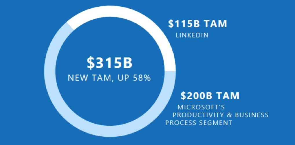 "While LinkedIn and Microsoft are highly complementary, they participate in unique total addressable markets (TAM)," Microsoft said in a presentation about the acquisition. "In addition to TAM growth, the likelihood of seizing more of the TAM will increase through differentiated experiences."
