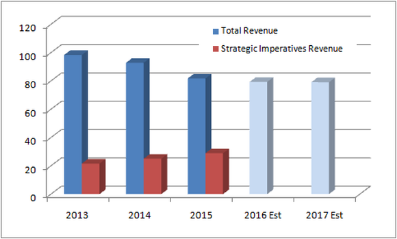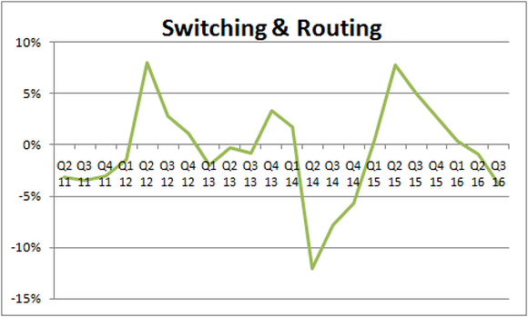 Switching and routing combined produced more than 44% of total company revenue in 2015, and growth has been hard to generate in recent years.